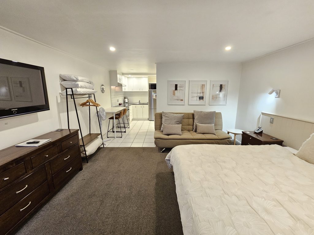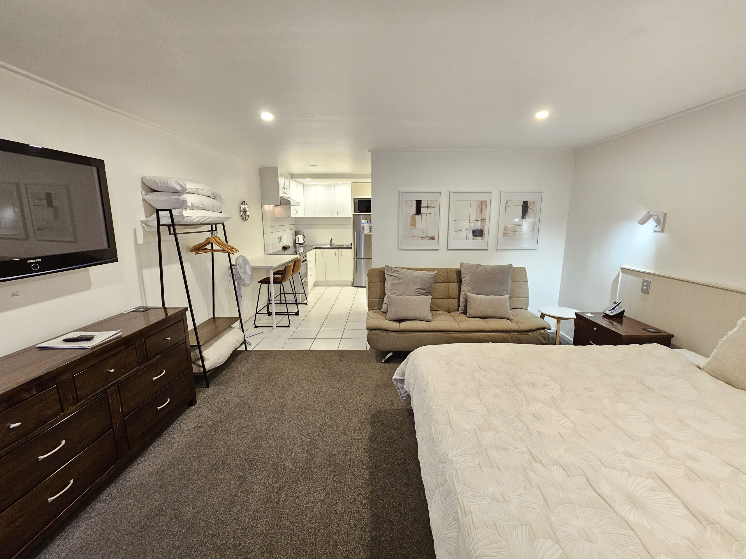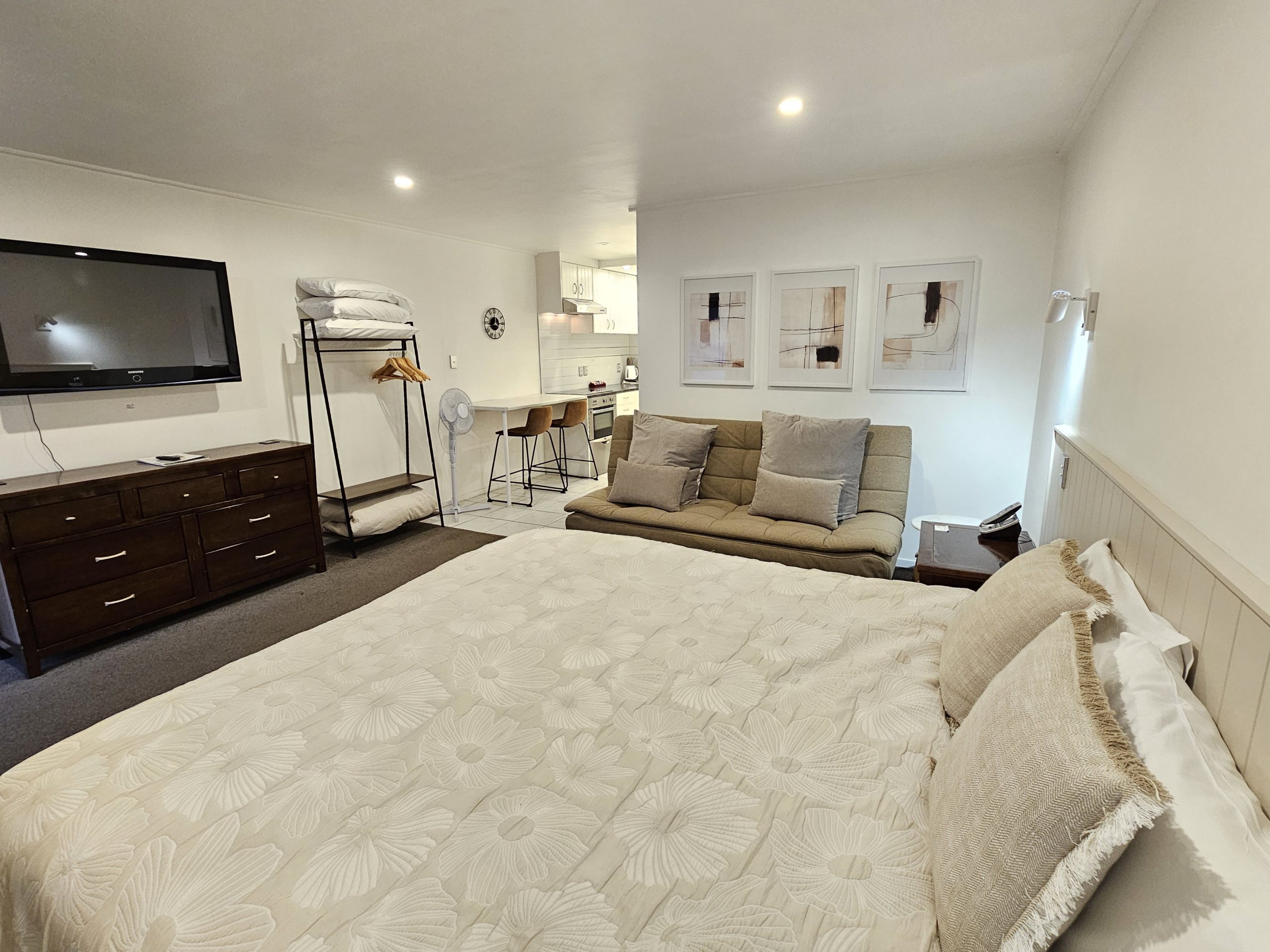 This apartment has a lounge area that has a superking bed that can be split into 2 single beds on request, couch, Sky TV and DVD/CD player.