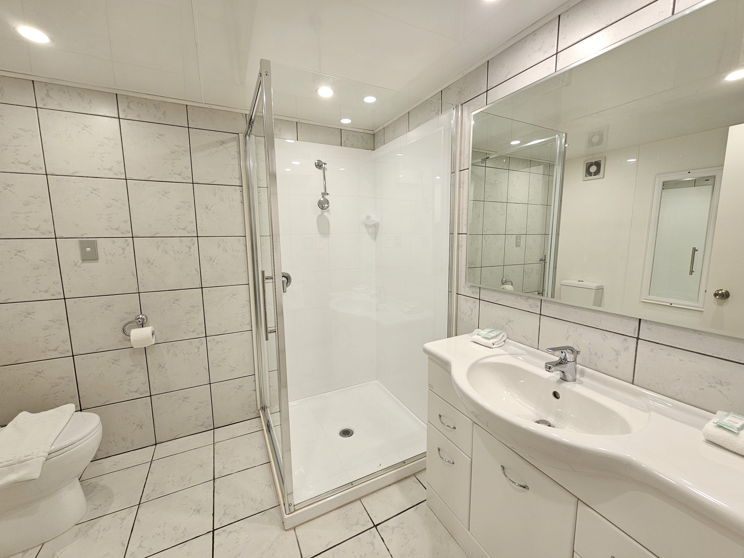 Bathroom has shower, vanity, and complimentary toiletries. This unit has a patio.