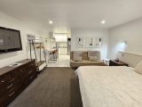 This apartment has a lounge area that has a superking bed that can be split into 2 single beds on request, couch, Sky TV and DVD/CD player.Full-kitchen complete with sink, food preparation area, stove, full-fridge, microwave, electric kettle, toaster, oven, dishwasher, complimentary tea and coffee and a dining table and chairs.Bathroom has shower, vanity, and complimentary toiletries. This unit has a patio.